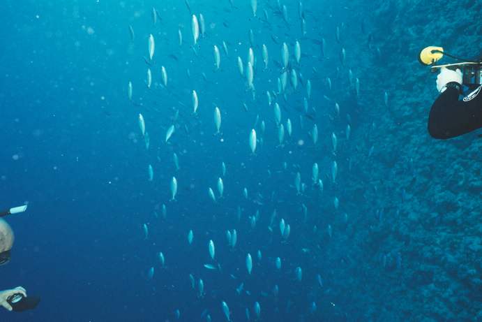 Christian too tries to catch the abundant fish schools with his video camera