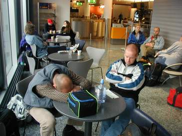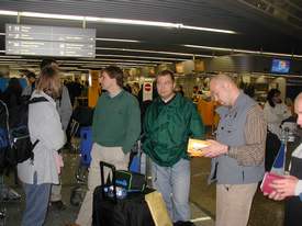 Treffen im Frankfurter Flughafen am Montagmorgen in aller Frühe - da ahnen wir noch nicht, dass unsere Tour mit eineinhalbstündiger Verspätung anfängt, weil ein Condor-Flieger ausgefallen ist...