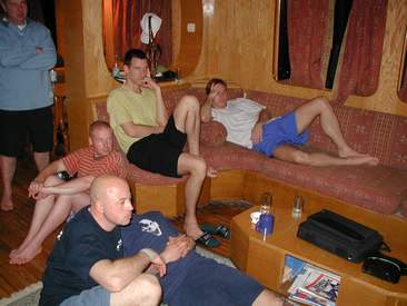 Wie immer hat jemand einen Laptop mit DVD-Player dabei, der natürlich zur Abendunterhaltung genutzt wird.