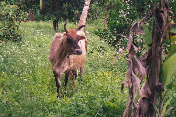 Although in lovely surroundings, this cow might have disliked the rope that held her.